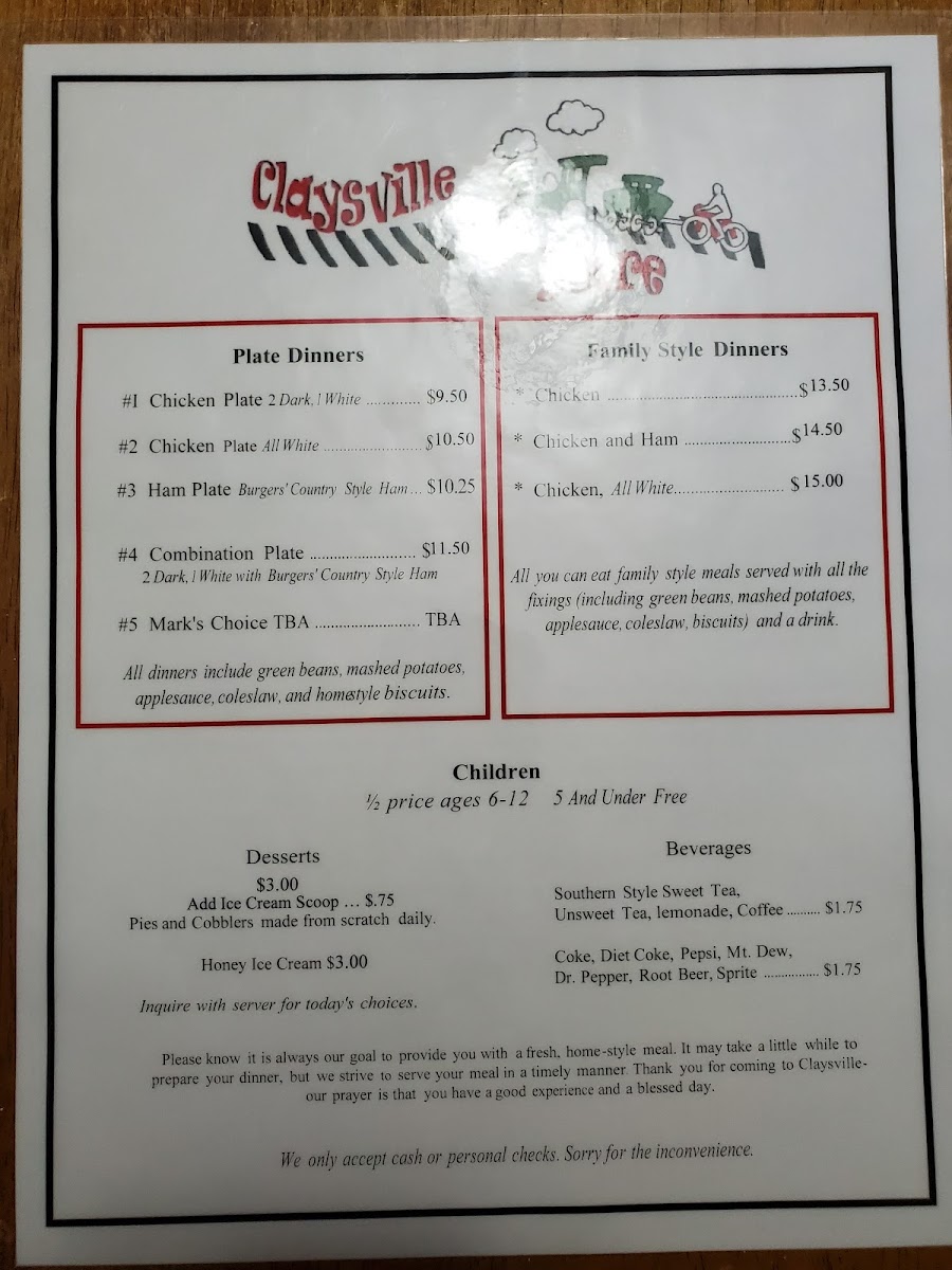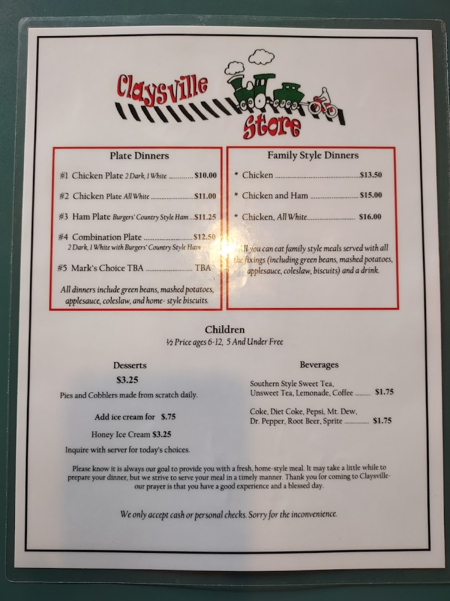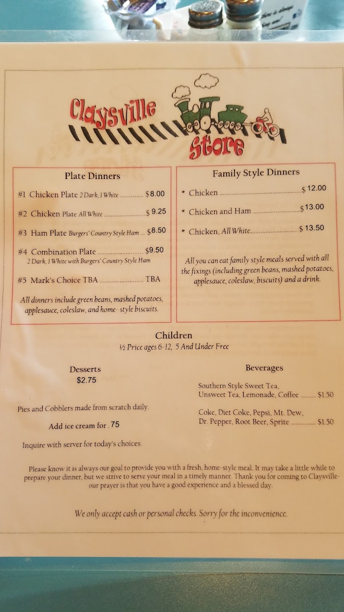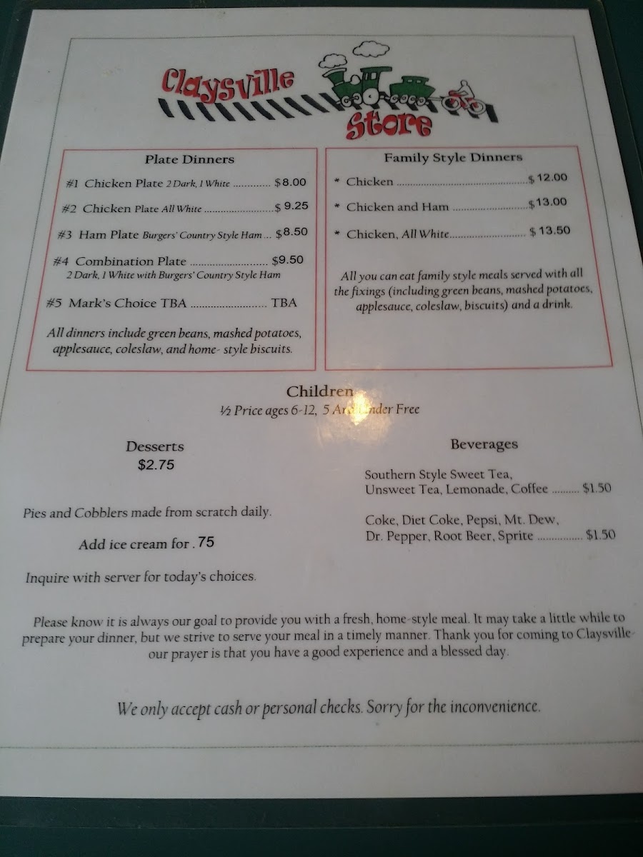 Claysville Store Menu